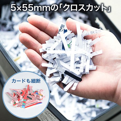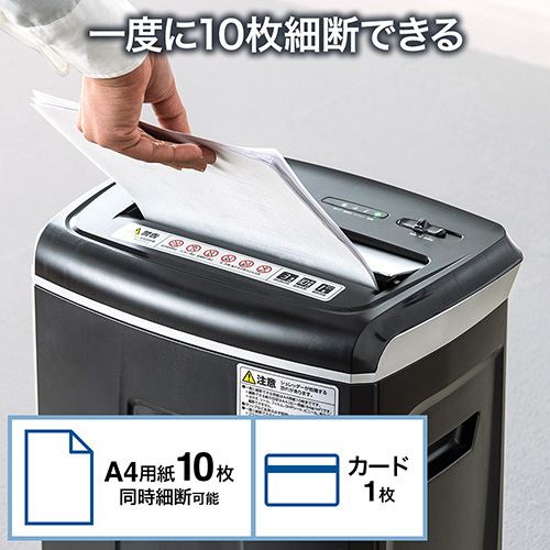 <特長>●A4コピー用紙最大10枚、カード1枚が細断できます。